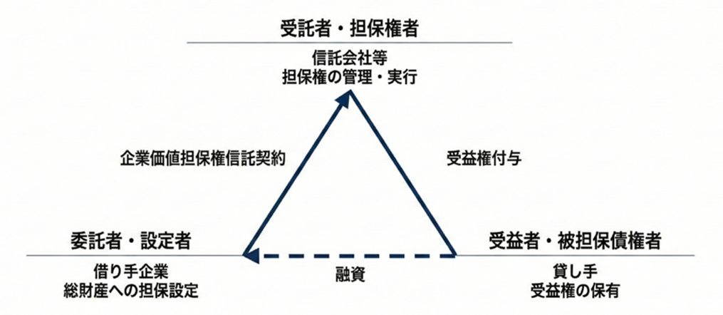 企業価値担保権は、「担保権の信託(セキュリティ・トラスト)」を用いて設定されます。